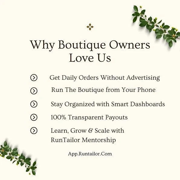 RunTailor is not just a service — it’s a complete system to grow your boutique, powered by technology. Welcome to Runtailor Boutique – Your Partner in Growth and Success!